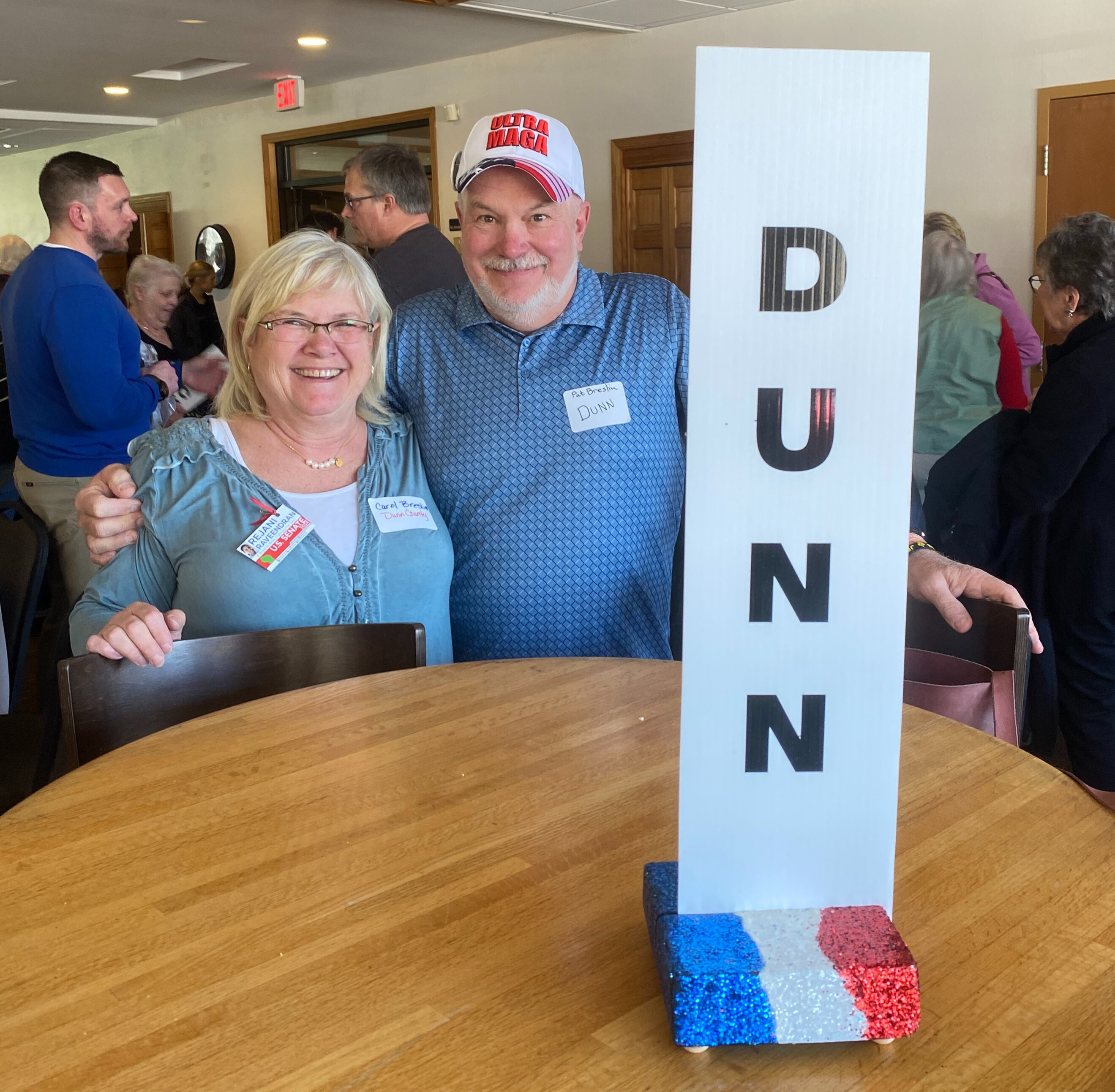 Foreground, above, is the Chair of the Republican Party of Dunn County, Pat Breslin, and his lovely wife, Carol. In the background (far left blue shirt) is WI State Senator Pat Testin, who gave us the great quote "Don't Minnesota our Wisconsin!" (And the people say, "AMEN!")