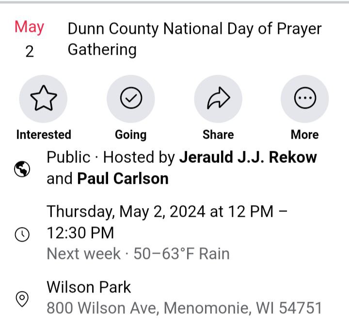 ***********Thursday, May 2 - National Day of PrayerThere will be a community prayer event at Wilson Park at noon. Additionally, RPDC's own Thursday morning prayer group will be meeting, as usual, at 9:30 AM at headquarters. You are welcome to join them. |