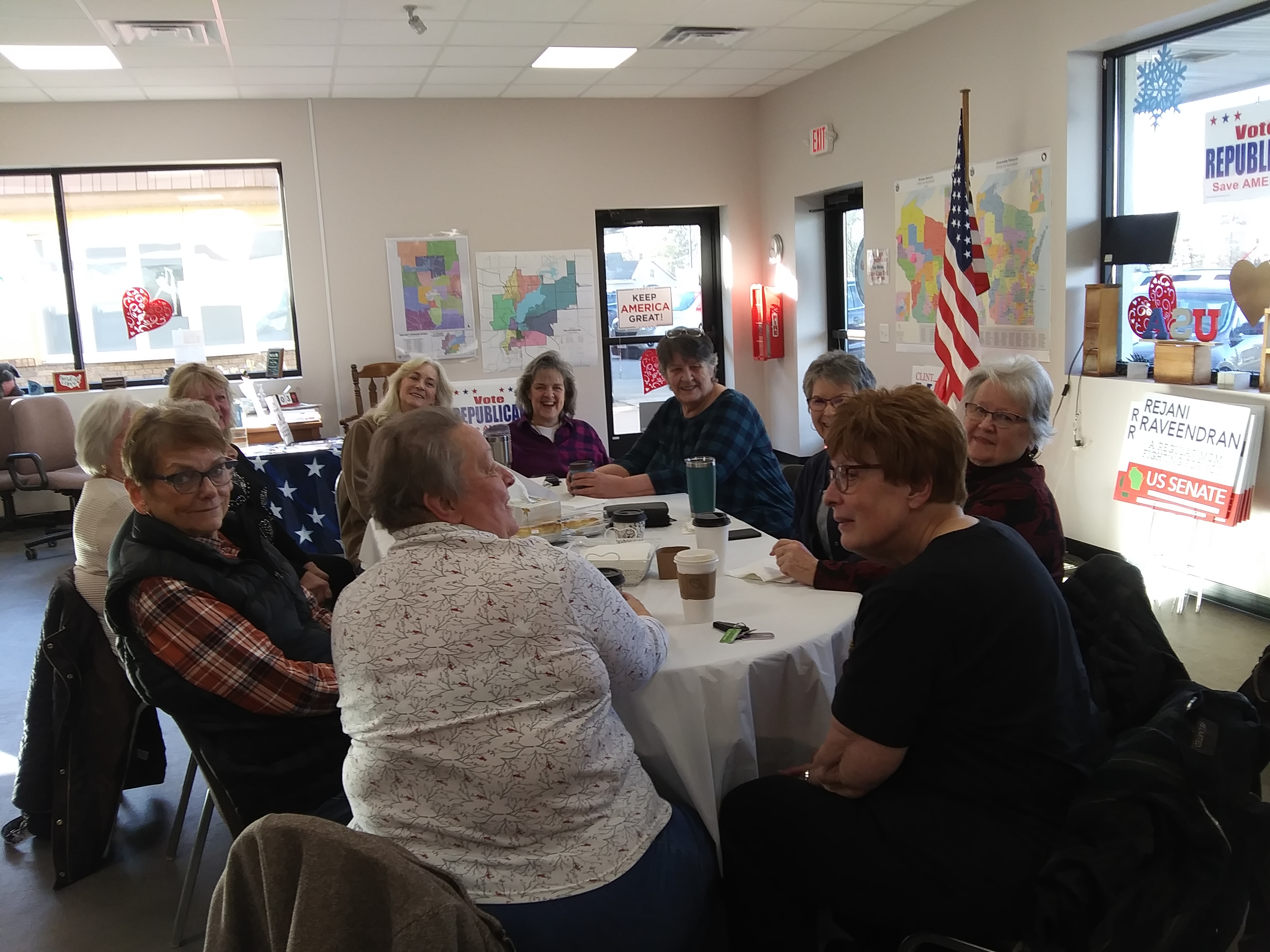 Republican Women gather on Tuesday mornings from 9 - 11 AM at headquarters. Ladies are welcome to stop by for some informal social time.